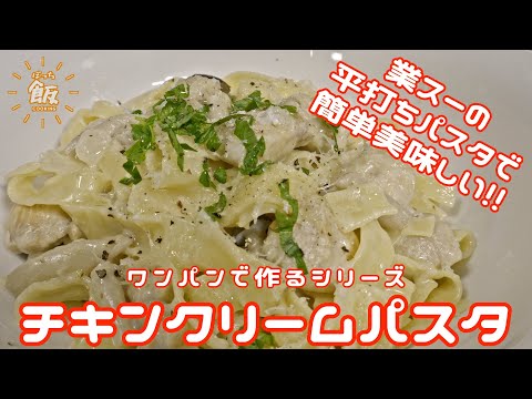 業スーの平打ちパスタ(パッパルデッレ)でワンパン簡単チキンクリームパスタ!!